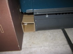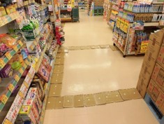 初回の施工は夜間の粘着マットを用いた捕獲作業になります。ネズミは数センチの穴でも頭が通れば、侵入してきます。その為、店内全域に侵入の可能性は常にあり、人の勘に頼った数十枚の粘着マット設置では最適な駆除方法とはいえません。サンエーでは調査に基づき状況により店内全域に数百枚単位の粘着マットを設置し、徹底した捕獲作業を実施します。 |