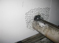 捕獲作業で見つけ出したネズミの侵入口を鉄板や金網、防鼠ブラシを用いて、侵入出来ない様に遮断する作業を行います。ネズミは強力な前歯と押す力を持っており、大抵の素材は穴をあけてしまいます。対ネズミ対策として効果的な方法でサンエーでは防鼠作業を行いますので、繰り返し穴を開けられる心配はございません。 |