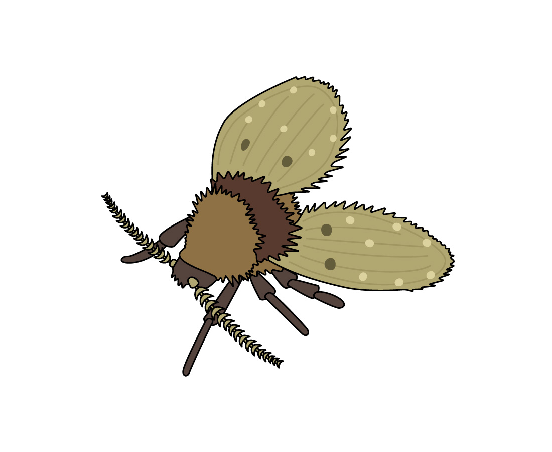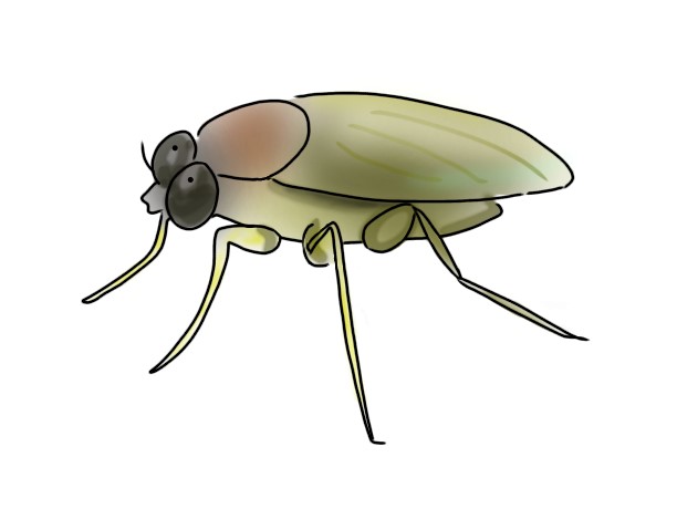 身体が細く、すばしっこい動きが特徴のノミバエは、卵から成虫になるまで約2週間で、成虫になって約10日で寿命をむかえる。背中がノミのように丸まっている姿が由来となり、ノミバエと呼ばれるようになった。